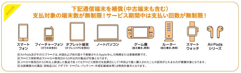 ※対応メーカーは日本国内で正規販売されており、且つ日本国内で修理サービスを展開しているメーカーとなります。